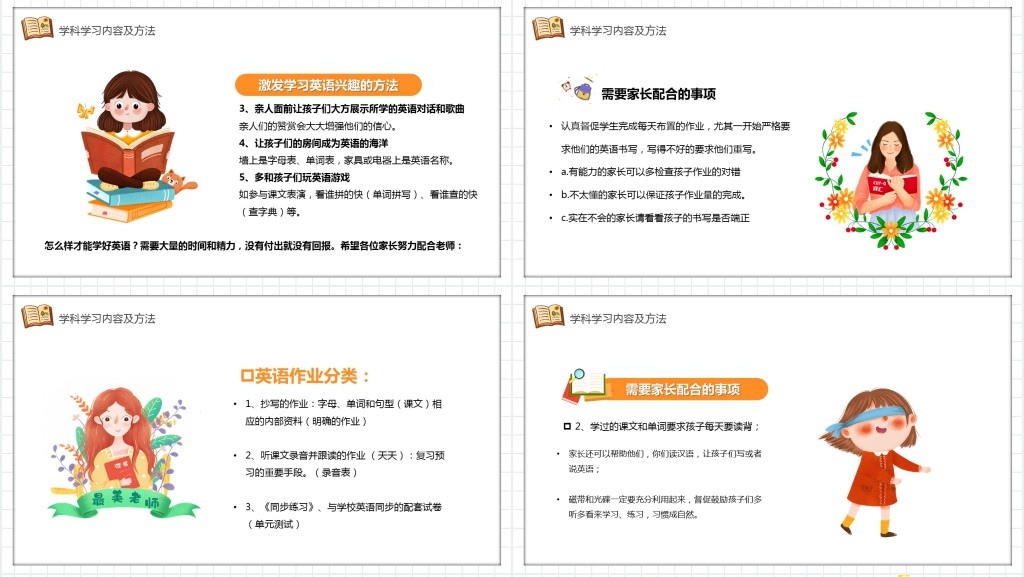 这套小学家长会英语老师发言稿PPT模板属于内容型,已包含实质内容,可直接使用!
