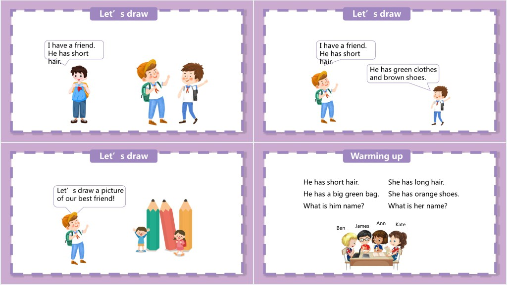 “我的朋友”第5-6课时内容涉及如何建立和维护良好的人际关系,包括对待朋友间的冲突和矛盾的处理方法,以及如何在团队中合作。课程内容将引导学生学习如何倾听和理解朋友的感受,培养同理心和沟通技巧,同时也会探讨在人际关系中的责任和尊重。通过案例分析和小组讨论,学生将有机会深入思考并分享自己的观点,从而提升人际交往能力。