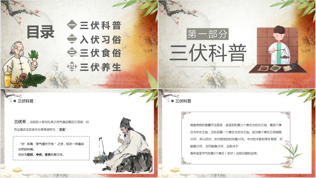 这套三伏养生知识科普PPT模板属于内容型,已包含实质内容,可直接使用!