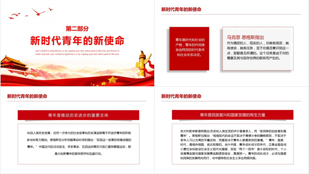 这套新时代新使命新青年不忘初心跟党走建功新时代团员辅导PPT课件属于内容型,已包含实质内容,可直接使用!