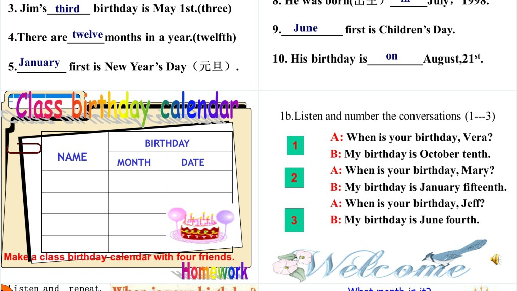 这套When is your birthday英语PPT课件属于内容型,已包含实质内容,可直接使用!