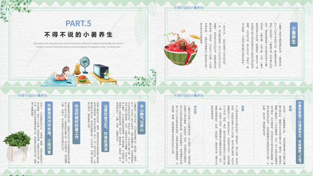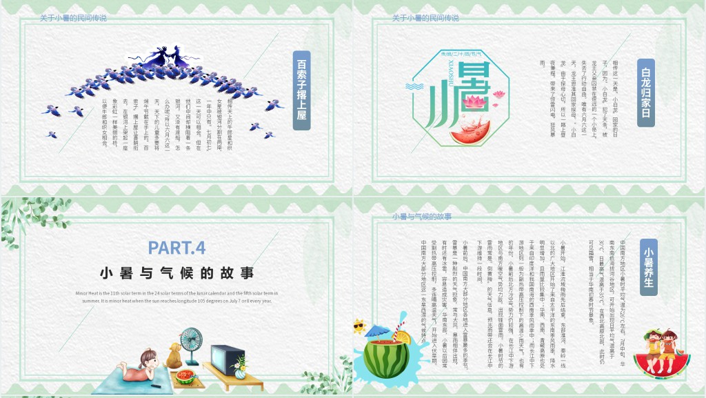这套小暑节气知识科普宣传PPT模板属于内容型,已包含实质内容,可直接使用!