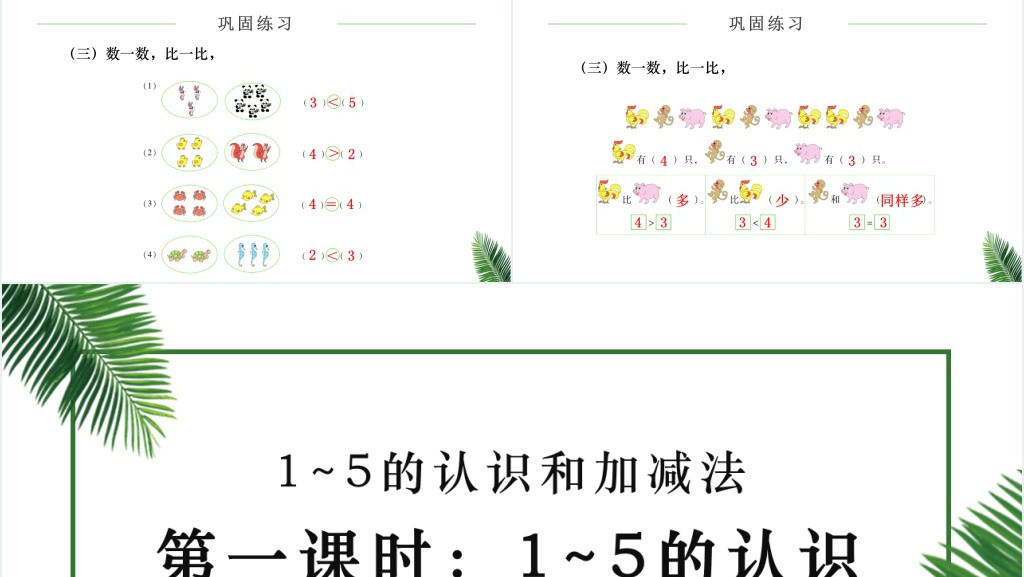 这套人教版小学一年级数学上册第三课第一课时:1~5的认识和加减法——1~5的认识PPT课件属于内容型,已包含实质内容,可直接使用!