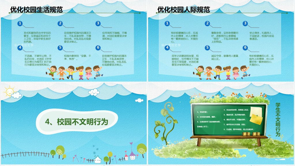 小学生校园讲文明懂礼貌内容主要包括引导学生养成良好的行为习惯和社会交往规范,培养学生尊重师长、友爱同学的意识,倡导校园和谐氛围。内容涵盖了校园礼仪、言行举止、与人交往等方面的内容,通过案例分析、互动讨论、角色扮演等形式引导学生树立正确的价值观念,提高他们的自我管理和社会适应能力。同时,还会强调尊重师长、团结友爱、诚实守信等道德品质,引导学生在校园中遵守秩序、文明礼貌地与人交往,营造良好的学习和生活环境。