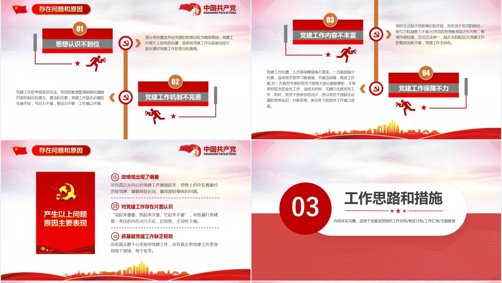 这套党政风基层党支部书记党员干部党建工作述职报告PPT模板属于内容型,已包含实质内容,可直接使用!