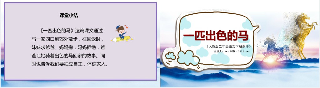 这套部编人教版小学二年级语文下册一匹出色的马PPT课件属于内容型,已包含实质内容,可直接使用!