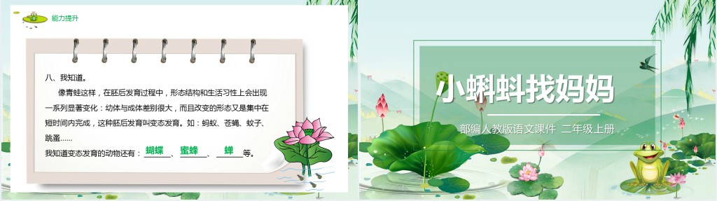 这套人教版小学二年级语文上册小蝌蚪找妈妈课文PPT课件属于内容型,已包含实质内容,可直接使用!