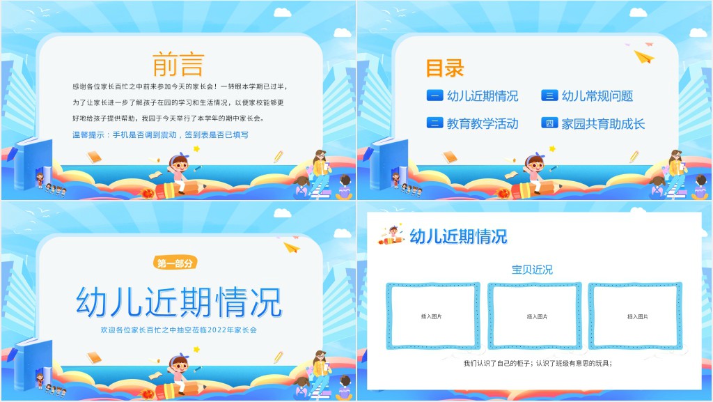 在幼儿园中班期中学期家长会上,老师将会分享孩子们这段时间的成长点滴和教学安排。家长们将听到孩子们在认知、社交、情绪等方面的进步,以及未来学期的学习重点和活动安排。通过这次会议,家长们能更深入地了解孩子在幼儿园里的生活和学习情况,与老师共同关注孩子的成长,形成良好的家园合作关系。