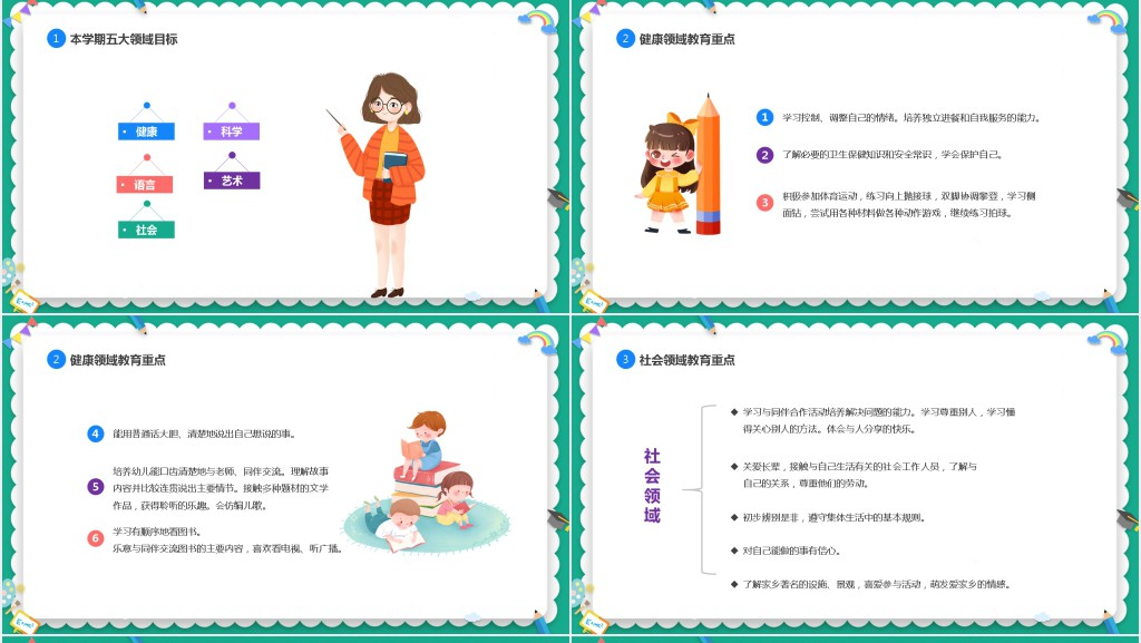 卡通风幼儿园中班开学家长会内容将涵盖以下几个方面:孩子入学适应问题、家长配合学校教育工作、孩子在园生活安全与健康等方面的内容。在家长会中,将通过各种形式的互动与交流,帮助家长更好地了解幼儿园的教育理念和教学方式,促进家园沟通,共同关心孩子的成长。