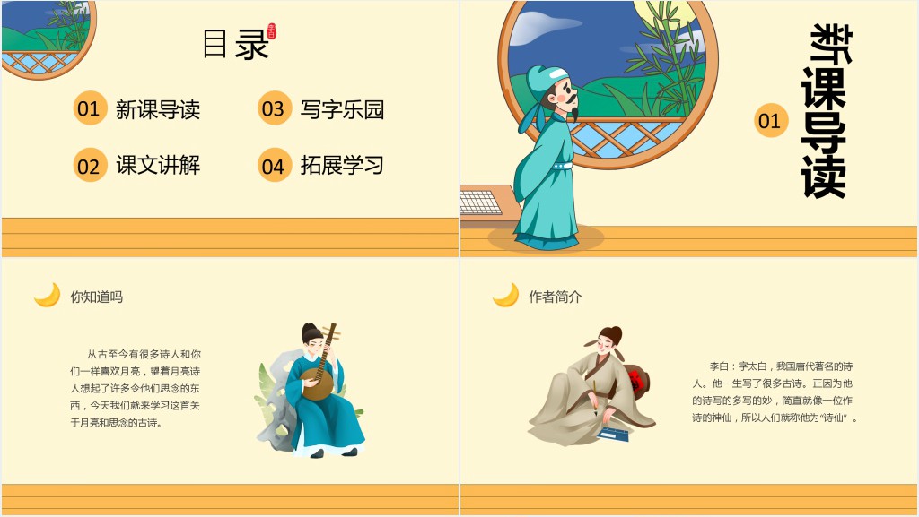 这套小学一年级语文上册《静夜思》PPT课件属于内容型,已包含实质内容,可直接使用!