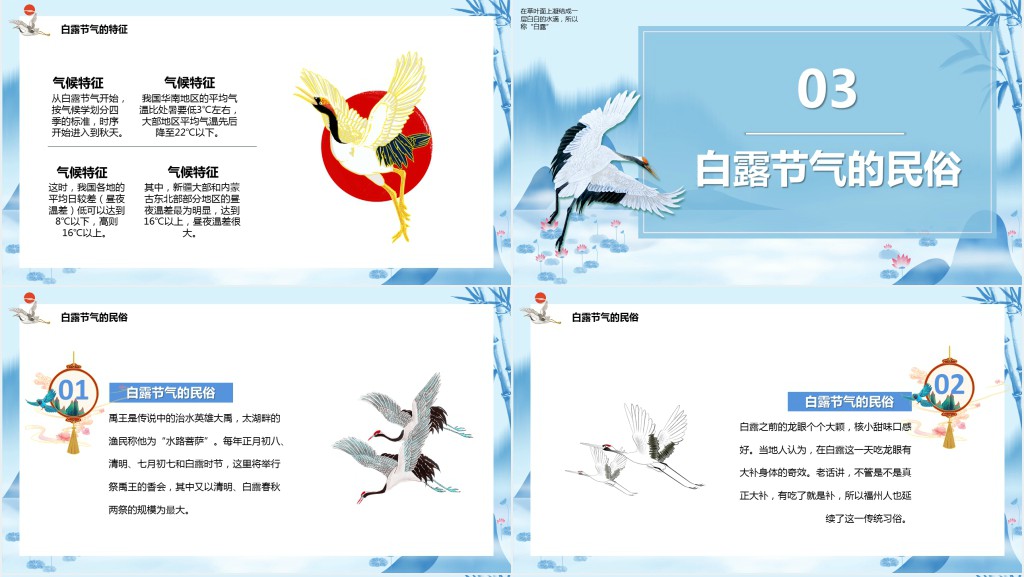 这套白露节气知识介绍PPT模板属于内容型,已包含实质内容,可直接使用!