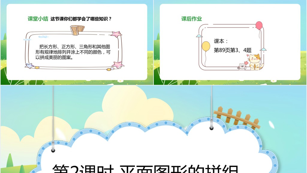 这套青岛版小学一年级数学下册《平面图形的拼组》第二课时PPT课件属于内容型,已包含实质内容,可直接使用!