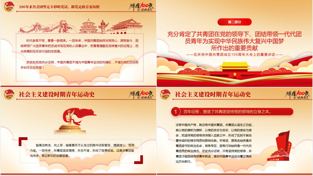 这套庆祝青年团成立100周年大会上的讲话PPT党课属于内容型,已包含实质内容,可直接使用!