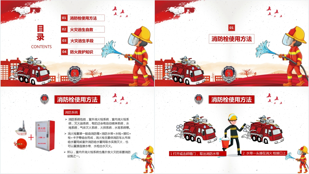 - 火灾报警、扑救、疏散逃生和自救互救的基本知识和技能;