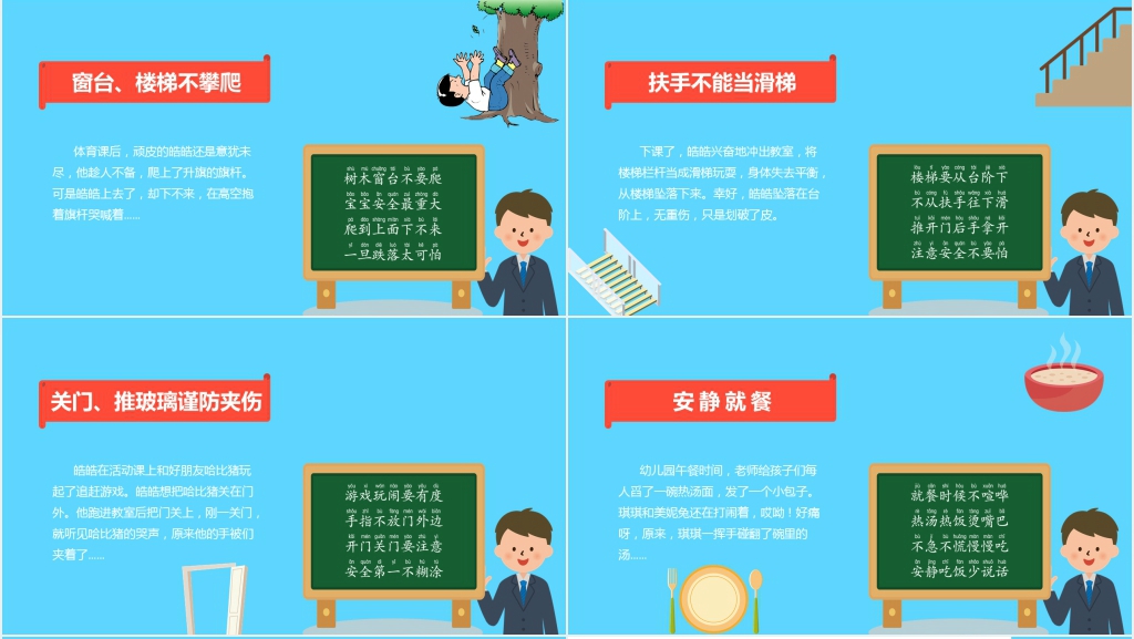 - 人际安全。幼儿园大班的孩子们已经能够与同伴和老师建立友好的关系,但是他们还不太懂得如何处理冲突、分歧或欺凌等问题,容易受到伤害或伤害别人。家长和教师应该教育孩子们如何尊重和关爱自己和他人,告诉他们在遇到问题时要冷静、理智、沟通、求助等,不要用暴力、言语或行为伤害自己或他人,不要随意相信或跟随陌生人等。家长还应该多关注孩子们的情绪变化,及时发现和解决他们的心理问题。