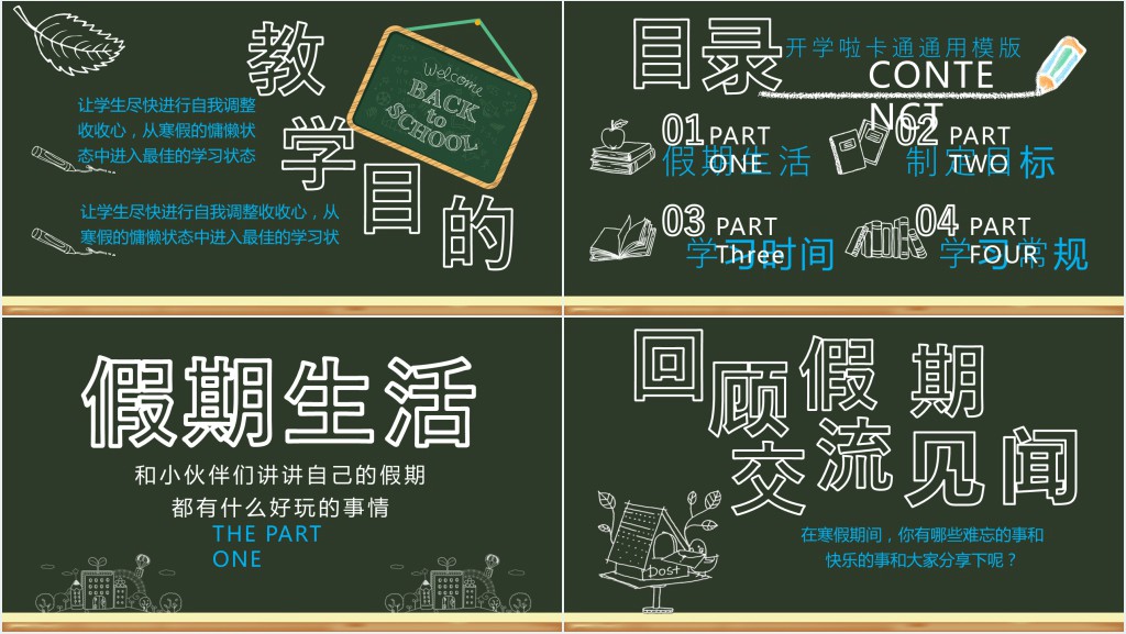 这套黑板风开学啦PPT模板属于内容型,已包含实质内容,可直接使用!