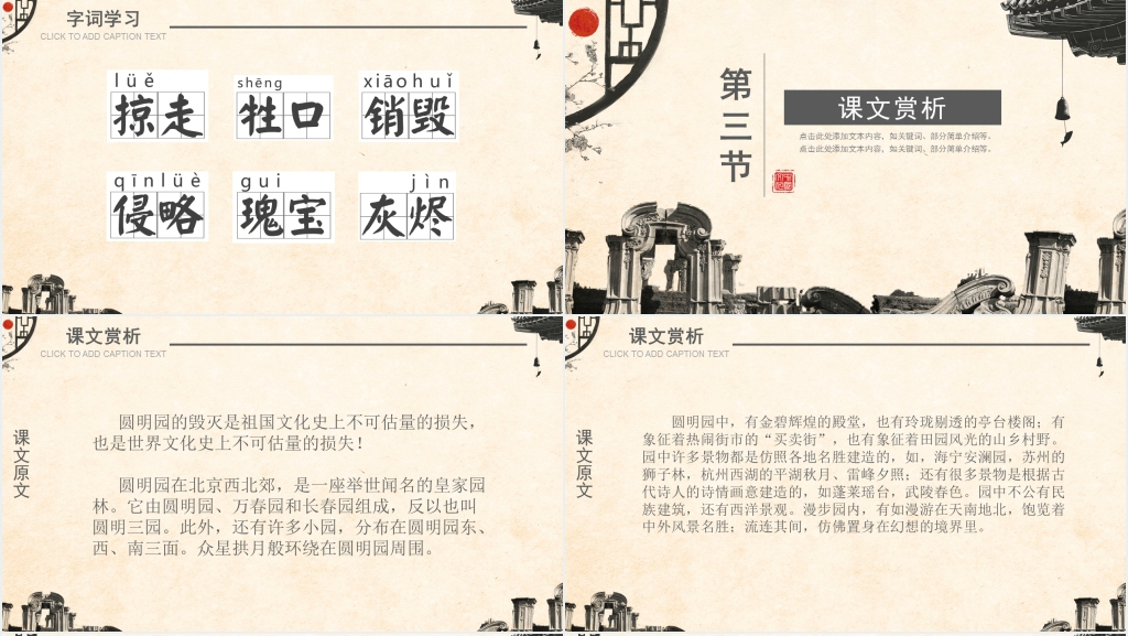 这套人教版五年级《圆明园的毁灭》教案PPT课件属于内容型,已包含实质内容,可直接使用!