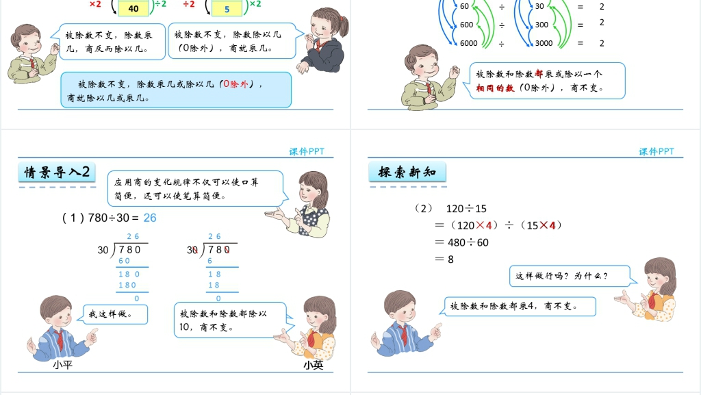 这套人教版四年级商的变化规律PPT课件属于内容型,已包含实质内容,可直接使用!
