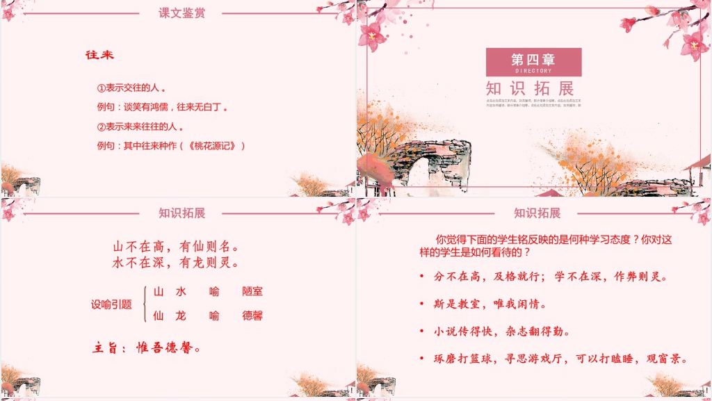 8. 总结复习:在课堂结束时,对《陋室铭》进行小结和复习。通过提问、讨论或小测验的形式,帮助学生巩固对课文内容的理解和记忆,发现并纠正可能存在的问题。