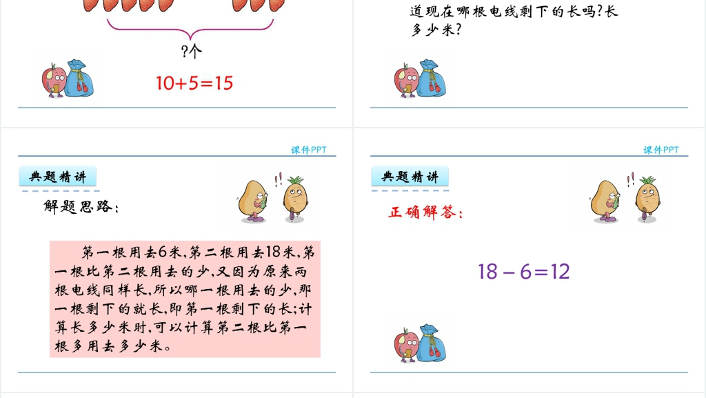 在课堂中,我设计了一些与加法和减法相关的游戏和活动。例如,组织学生进行角色扮演游戏,让他们扮演小白兔和小黄鸭玩具的角色,通过模拟场景进行加法和减法的运算。我注重培养学生的逻辑思维、合作意识和问题解决能力。