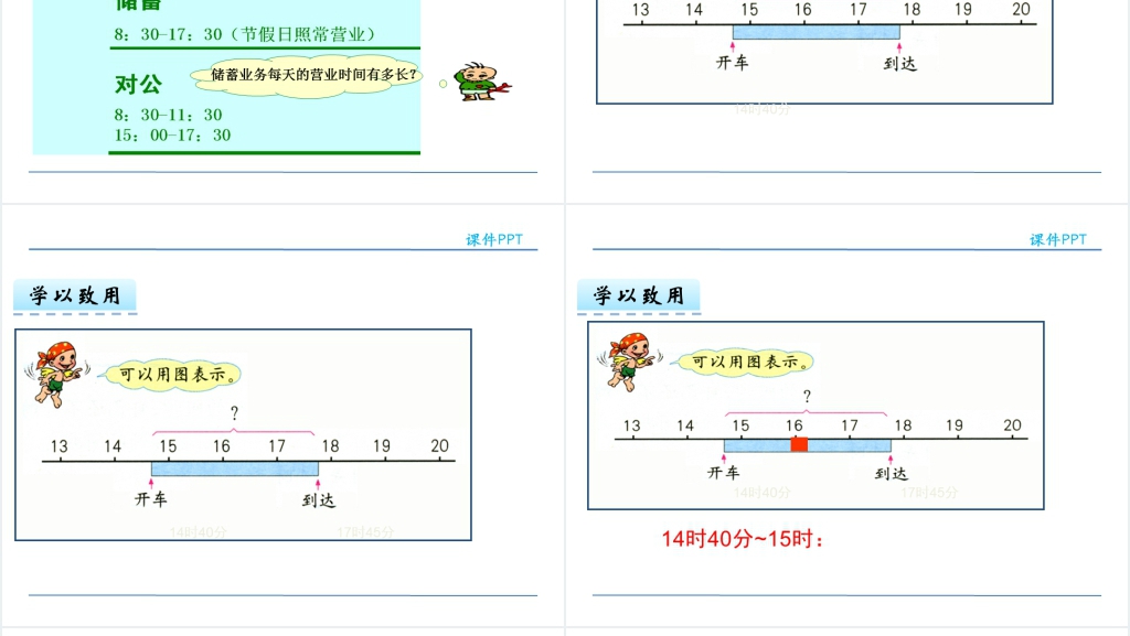 3. 合作交流。我组织学生进行小组合作、互动游戏、角色扮演等活动,让学生在实践中运用24小时计时法表示和转换时间,增强学生的合作意识和交流能力。