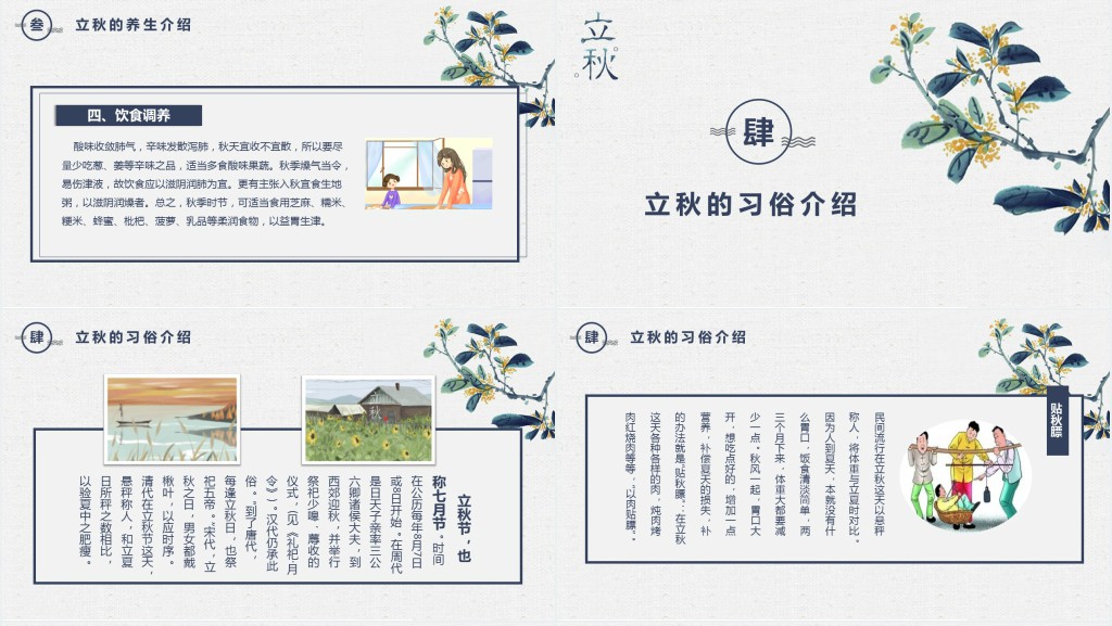 这套立秋节气习俗PPT模板属于内容型,已包含实质内容,可直接使用!