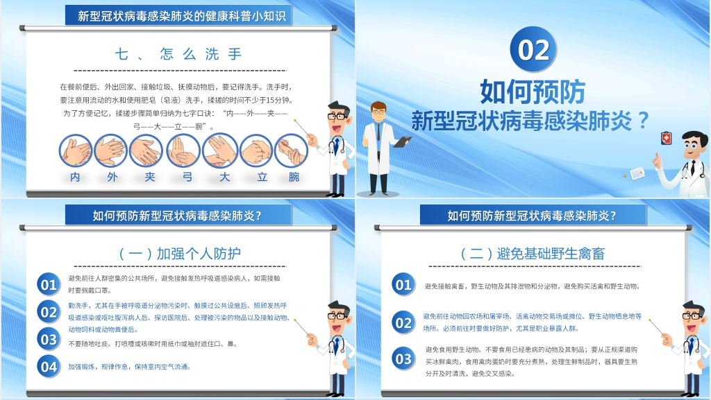 这套卡通风知识科普如何预防新型冠状病毒肺炎PPT模板属于内容型,已包含实质内容,可直接使用!