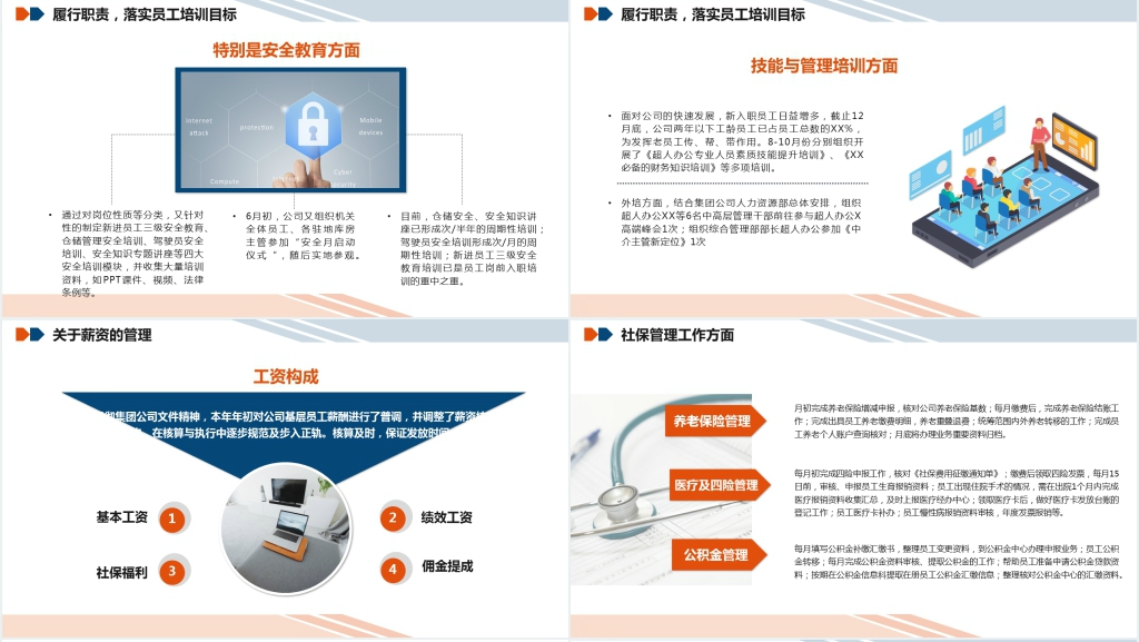人资行政部年终总结暨新年计划,是一个重要的活动,旨在回顾过去一年的工作成果,并制定新的目标和计划。在这个活动中,我们将对人资行政部过去一年的工作进行全面的梳理和总结,并展望未来的发展方向和策略。我们将重点关注人力资源管理、员工福利以及行政管理等方面的工作,分析其在公司发展中的重要作用。通过这次总结,我们将为新的一年制定出更加明确和具体的工作目标,以期推动公司的持续发展和进步。同时,我们还将提出一系列创新和改革的举措,以适应不断变化的市场环境和业务需求。我们相信,通过精心组织和准备,本次年终总结暨新年计划将为人资行政部带来新的机遇和挑战,也为公司的发展注入新的动力和活力。