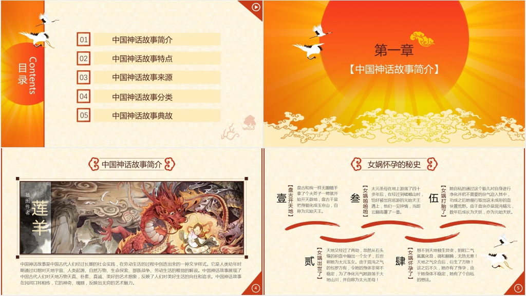 无论是作为演讲的辅助工具,还是作为展示中国文化的窗口,这个PPT模板都能够给观众带来全新的视觉体验和思考方式。它蕴含着中国故事神话传统的精髓,将古老的智慧和美学传承下去,为我们提供了一个更加丰富多彩的世界。