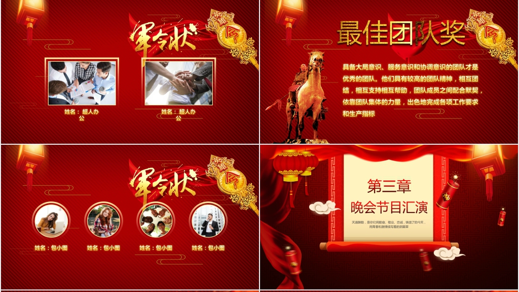 军令状年终总结颁奖典礼的整体布置,以简洁明快的方式展现着一年来的成果和收获。会场布置以鲜艳的色彩为主,搭配着简约大气的装饰,使人一眼便能感受到节日的喜庆氛围。在舞台中央的视觉焦点上,通过特别设计的装饰元素向参与者传递出一种积极向上的精神风貌。同时,会场布景也巧妙地融入了军令状的标识和符号,让整个氛围显得庄严而又温馨。在典礼现场,更是通过精心安排的灯光效果和音乐搭配,为整个活动增添了动感和活力,为大家带来了一场深刻而难忘的体验。