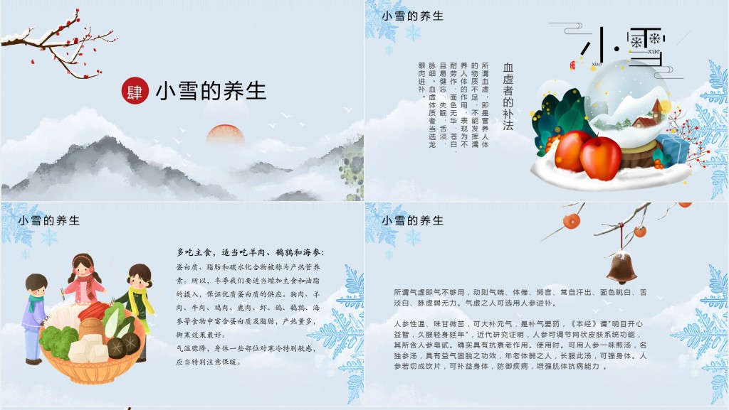 这套小雪节气来历介绍PPT模板属于内容型,已包含实质内容,可直接使用!