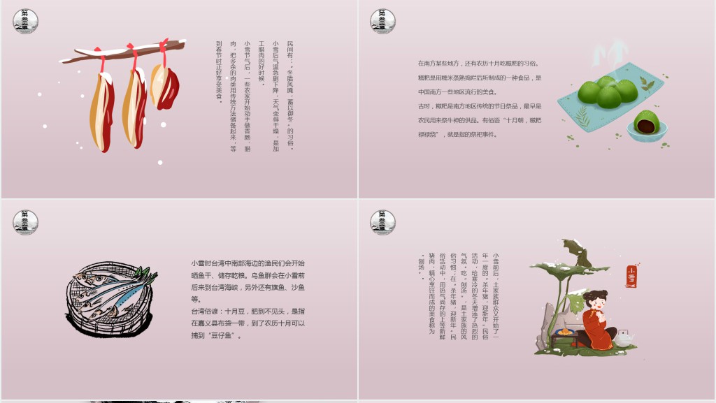 这套小雪节气详细介绍PPT模板属于内容型,已包含实质内容,可直接使用!