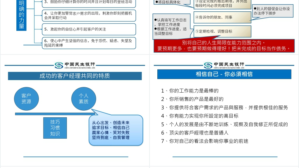 总之,银行客户经理在提升营销技能和目标客户拓展方面需要注重产品知识、客户关系建立、市场营销策略制定、沟通能力、个人品牌建立以及持续学习。通过不断提升自身能力和技巧,客户经理能够更好地满足客户需求,拓展目标客户群。