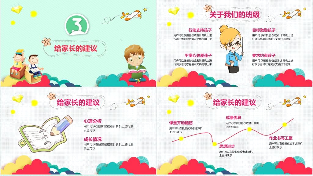 卡通风幼儿园新学期新生家长会PPT课件