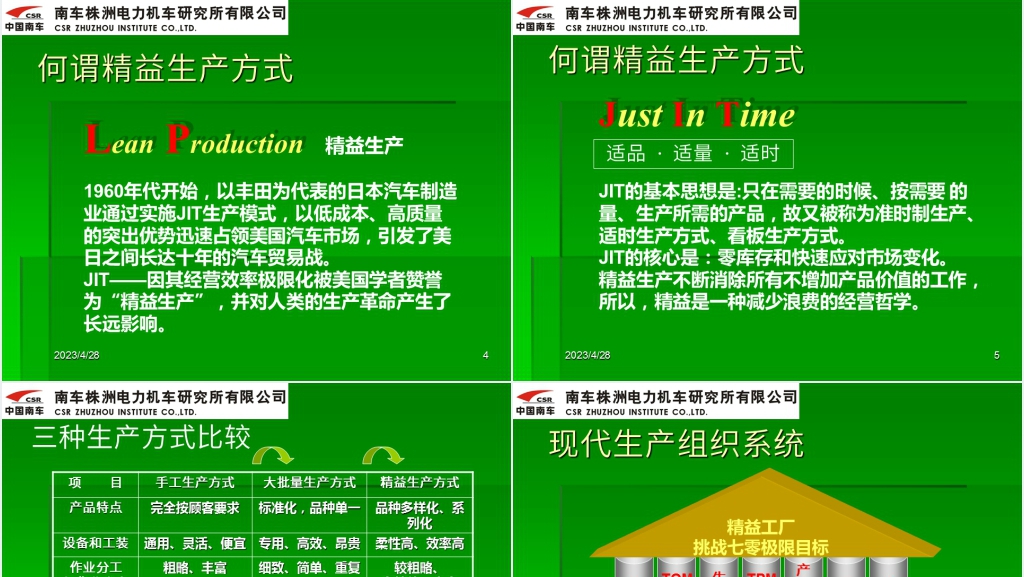 本文是中国南车JIT精益生产内部培训的一部分,旨在帮助员工了解JIT精益生产的基本知识和实践方法,提高员工对JIT精益生产的认同和支持。希望大家能够积极参与本次培训,学习并运用JIT精益生产的理念和技能,为中国南车的发展做出贡献。