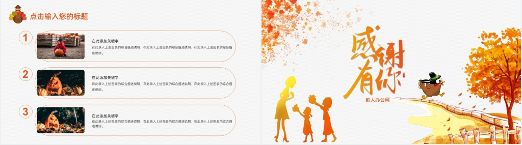 黄色秋风系感谢有你感恩节快乐PPT模板