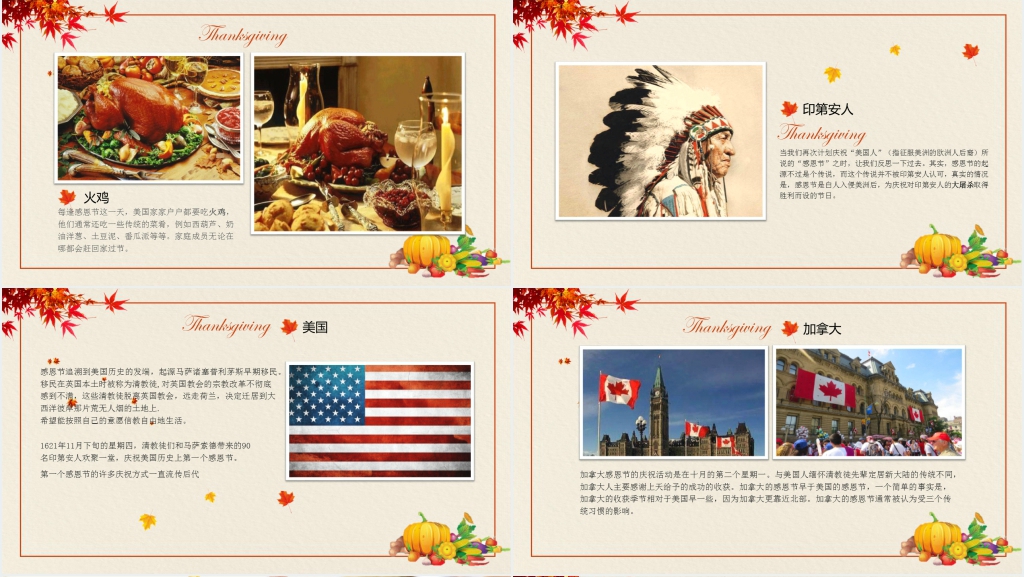 这套感恩节来历的介绍讲解PPT模板属于内容型,已包含实质内容,可直接使用!