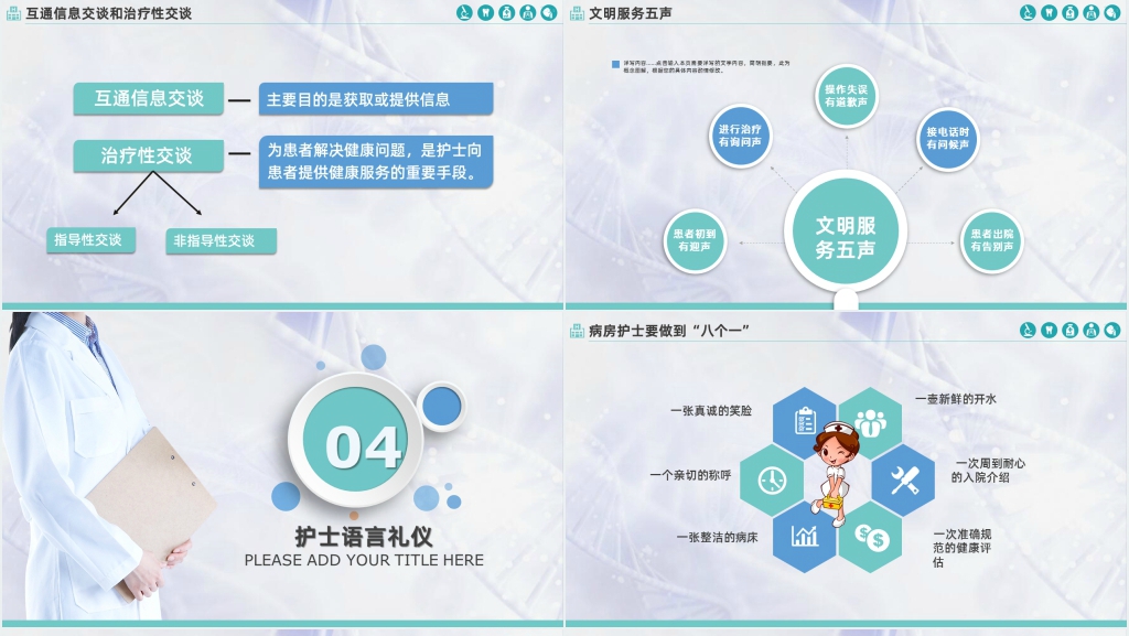 2. 语言文明、礼貌,使用标准的普通话或当地方言,不使用粗俗或不雅的词语,不与患者或家属争吵或辱骂,不谈论与工作无关的私人话题。