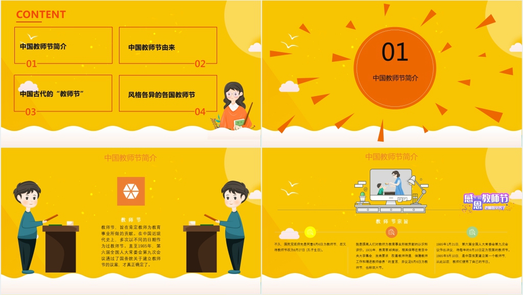 这套初中庆祝教师节主题班会PPT模板属于内容型,已包含实质内容,可直接使用!