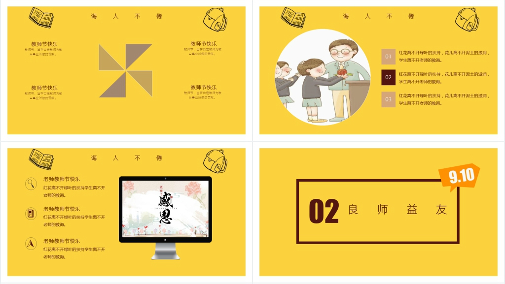 这套庆祝教师节9.10班会PPT课件属于内容型,已包含实质内容,可直接使用!