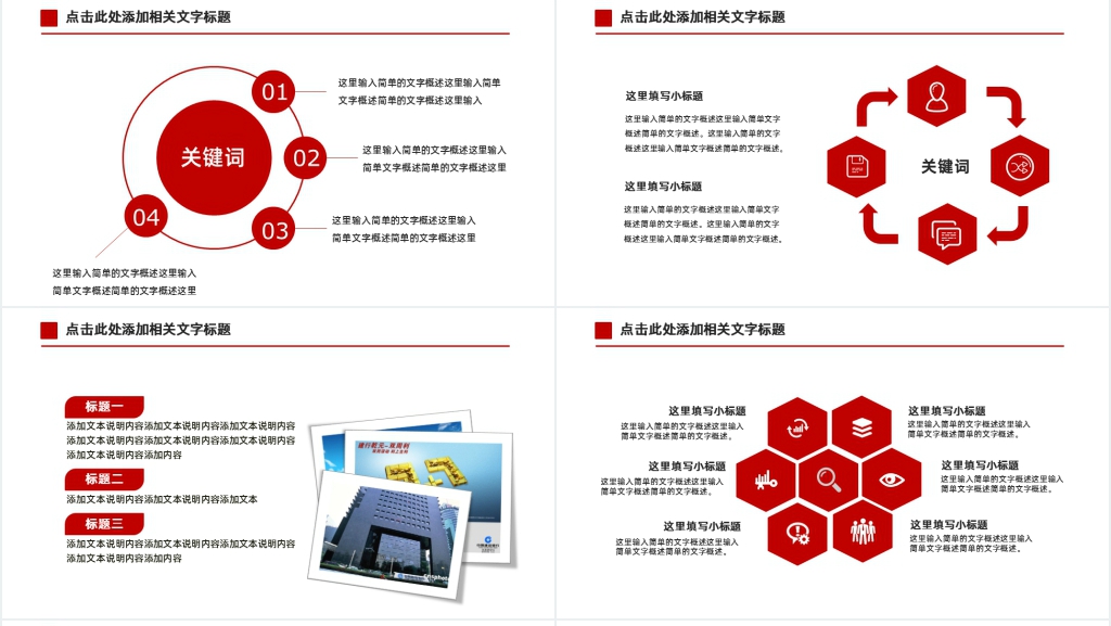 这款政府会议报告配色采用了经典的红白搭配,红色象征着热情、活力和力量,白色则代表纯净、简洁和正直。这种配色方案不仅使整个会议报告看起来具有活力和权威感,同时也突出了重要信息和关键内容,让观众能够更加专注和易于理解。这样的配色设计不仅符合政府会议的正式性和庄重感,同时也展现了政府工作的高效、透明和责任的形象。
