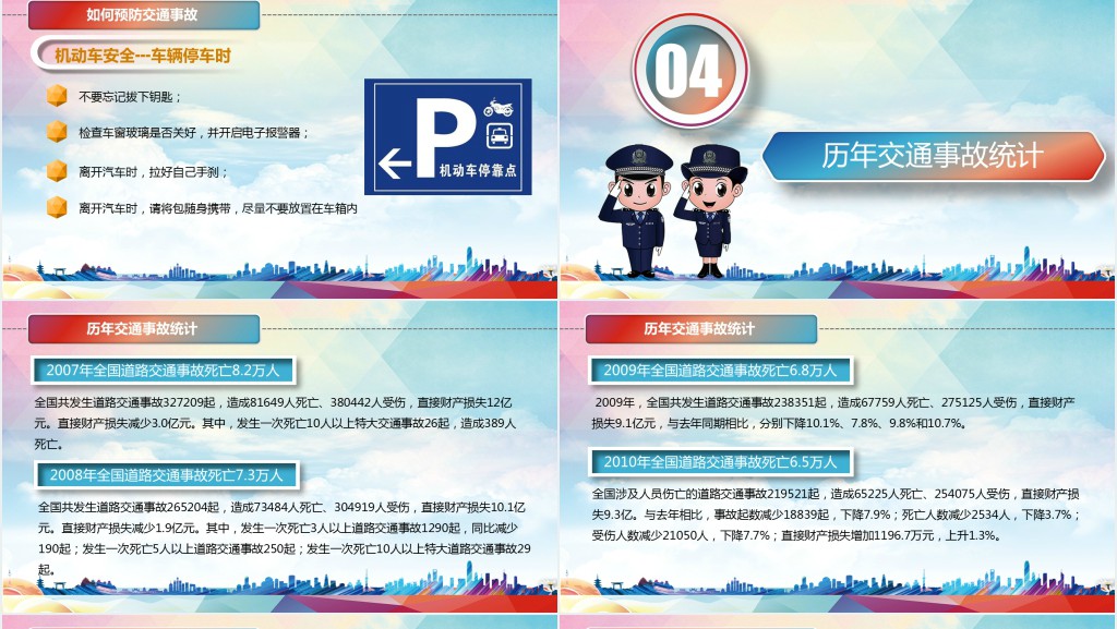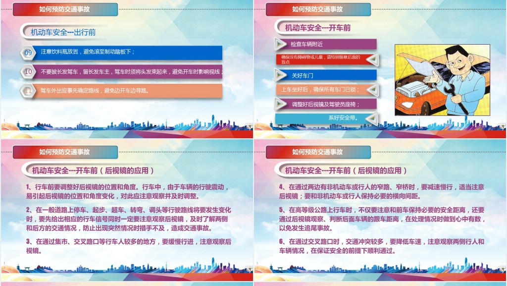 这套平安出行主题的主题班会PPT课件属于内容型,已包含实质内容,可直接使用!