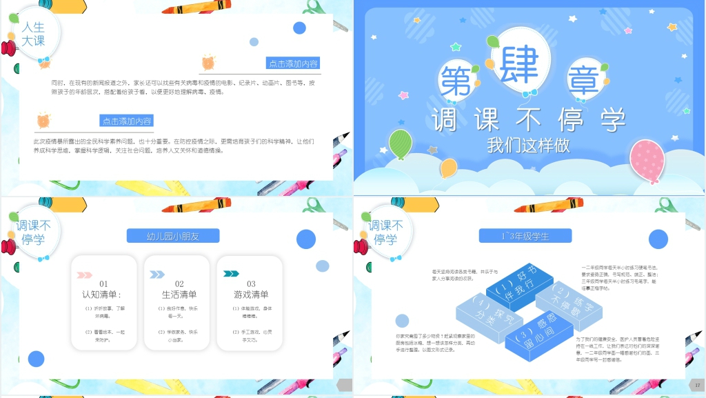 这套在线学习停课不停学方案PPT模板属于内容型,已包含实质内容,可直接使用!