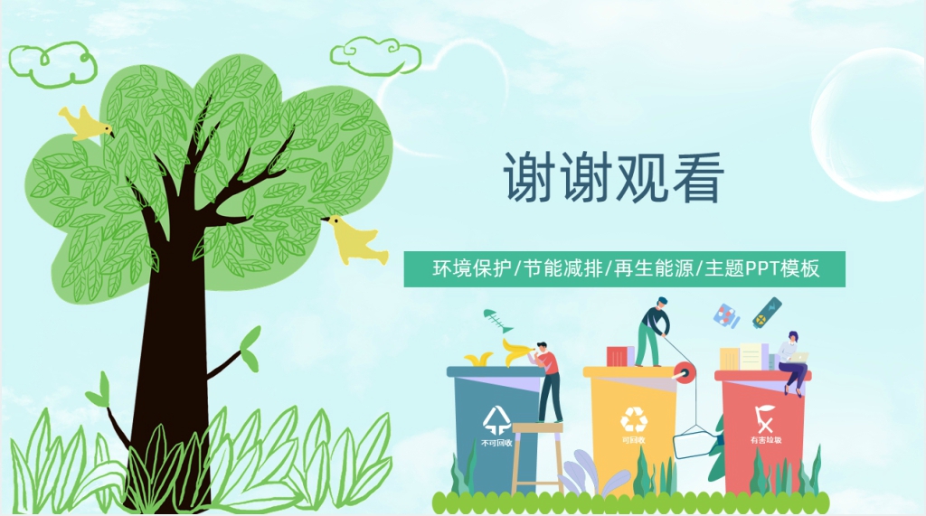 这套垃圾分类标识环保主题PPT模板属于内容型,已包含实质内容,可直接使用!