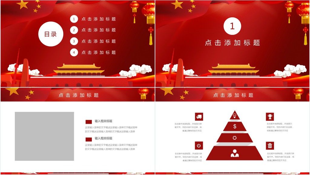 五一劳动节主题活动通用PPT模板以庆祝劳动者节日为主题,内容涵盖了劳动精神、劳动成果和劳动者的辛勤付出。模板设计采用鲜艳明快的色彩,搭配简洁大方的排版风格,突出展现劳动节的欢乐氛围和节日气氛。同时,模板中还融入了劳动者劳动场景、劳动成果展示等元素,以彰显劳动者的辛勤付出和劳动成果。整体设计简洁明了、内容丰富多彩,能够有效传达出对劳动者的尊重和感谢之情,展现出劳动节的重要意义和欢乐氛围。