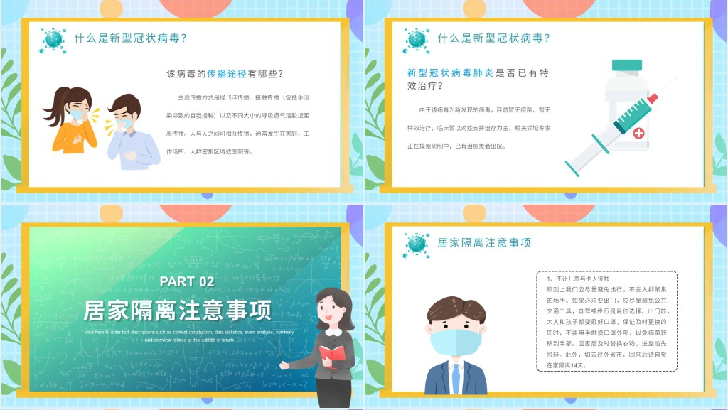这套卡通风幼儿园疫情线上家长会PPT模板属于内容型,已包含实质内容,可直接使用!