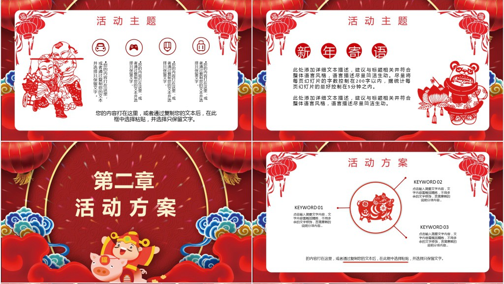 祥云剪纸风春节活动策划PPT模板