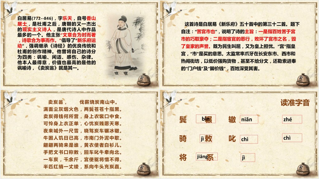 这套唐诗两首卖炭翁PPT课件属于内容型,已包含实质内容,可直接使用!