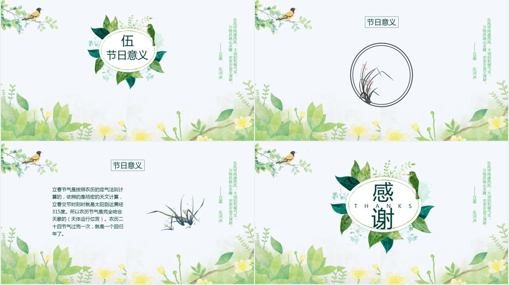 这套小清新立春节气介绍由来PPT模板属于内容型,已包含实质内容,可直接使用!