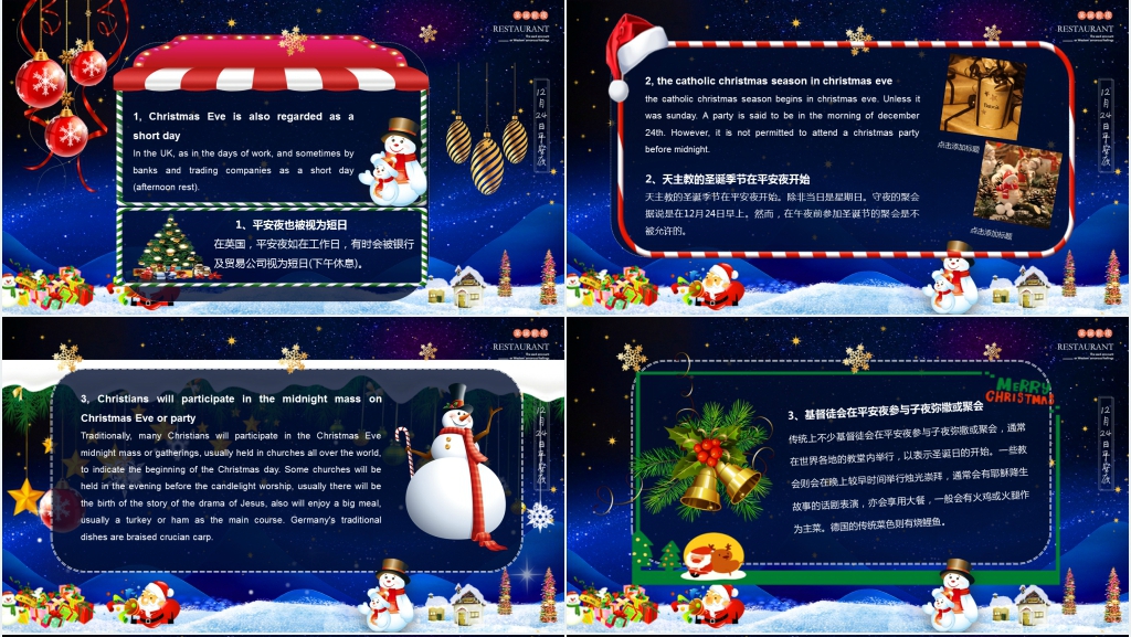 这套平安夜双语介绍PPT模板属于内容型,已包含实质内容,可直接使用!